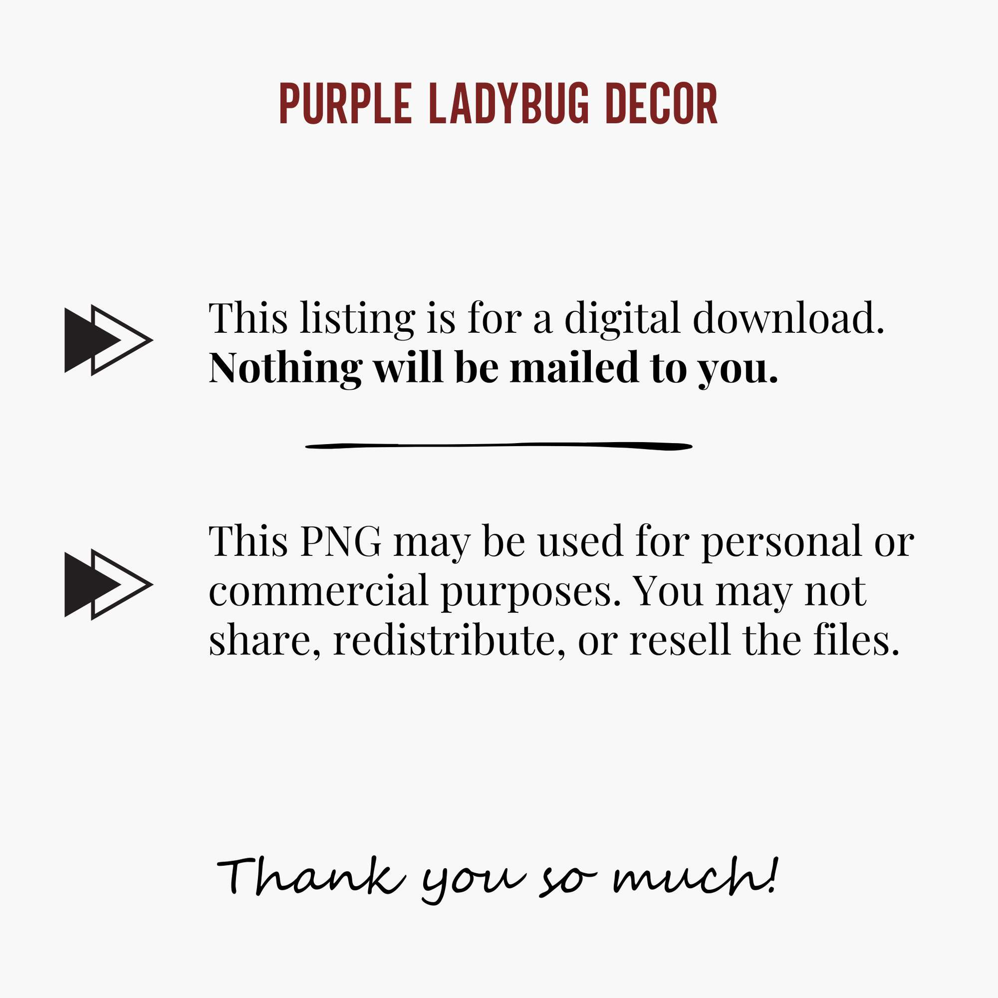Purple LadyBug Decor downloads are for PERSONAL USE only.