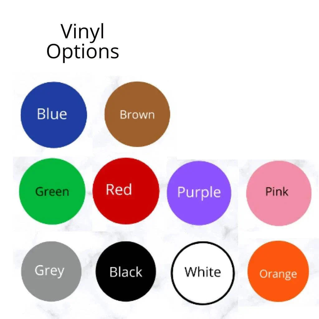 Please ensure you add the vinyl colours of your name and initial from the image to ensure speedy processing.